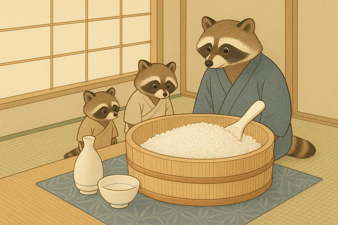 - Shamoji (rice paddle) or wooden spoon